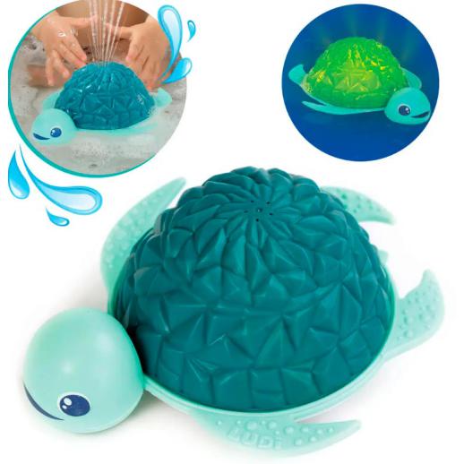 Quando colocada na água ,esta adorável tartaruga dispara jatos de água e a sua carapaça acende-se.